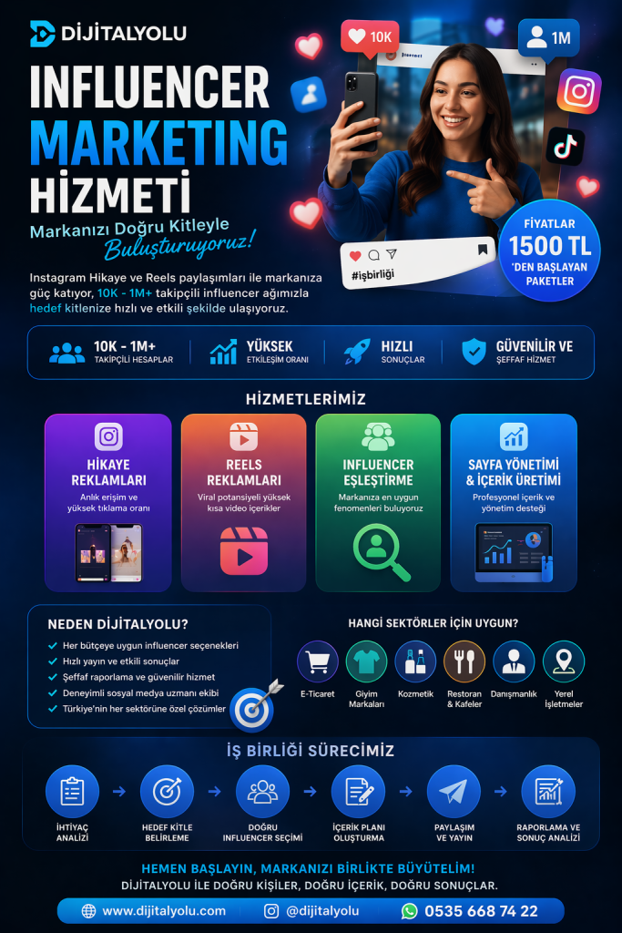 Dijital Yolu olarak, dijital dünyada markaların parlamasını sağlayan yaratıcı ve yenilikçi çözümler üretiyoruz. İstanbul Beylikdüzü merkezli ajansımızda, modern tasarım anlayışıyla estetik ve işlevselliği bir araya getiriyor, müşterilerimize özel çözümler sunuyoruz. Müşteri memnuniyetini her zaman öncelik olarak gören ekibimiz, projelere sadece bir iş gözüyle değil, bir ortaklık anlayışıyla yaklaşır. Dijital Yolu, sadece bir ajans değil; büyümek isteyen markalar için bir yol arkadaşıdır.