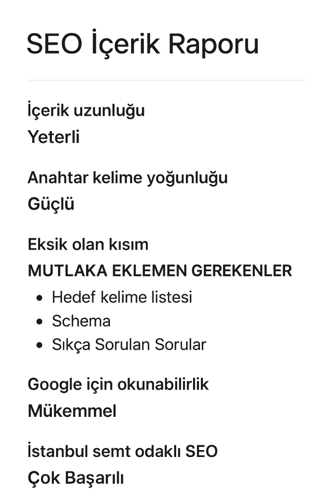✔️ Semt bazlı SEO içerik üretimi